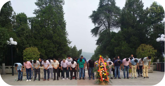 全体人员怀着崇敬的心情,参观了金寨县红军广场、红军烈士墓园、金寨县革命博物馆、洪学智将军纪念碑、金寨县红军纪念堂,瞻仰了革命烈士纪念塔。在纪念塔前,全体人员向烈士郑重三鞠躬后,由峻茂·天龙大厦及创业园项目部徐舒生、鲍丙军向烈士献上花篮,总经理林波整理花篮缎带。缅怀革命先烈们为寻求真理不惜抛头颅、洒热血的英雄壮举,使全体人员接受心灵的洗礼和思想的净化,感受一次深刻的革命传统教育。通过此次红色教育活动,使全体人员进一步增强工作的使命感、责任感和奉献意识。