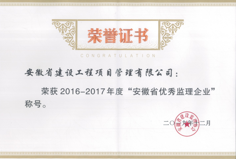 近期,安徽省建设监理协会公布了“冠亚(中国)表扬2016-2017年度安徽省优秀监理企业和优秀总监理工程师、优秀监理工程师通知”。我公司在此次评选中荣获2016-2017年度安徽省优秀监理企业;刘坤、程建云荣获2016-2017年度安徽省优秀总监理工程师;方正荣获2016-2017年度安徽省优秀监理工程师。