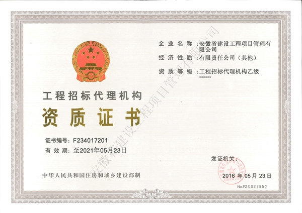 招标代理资质正本