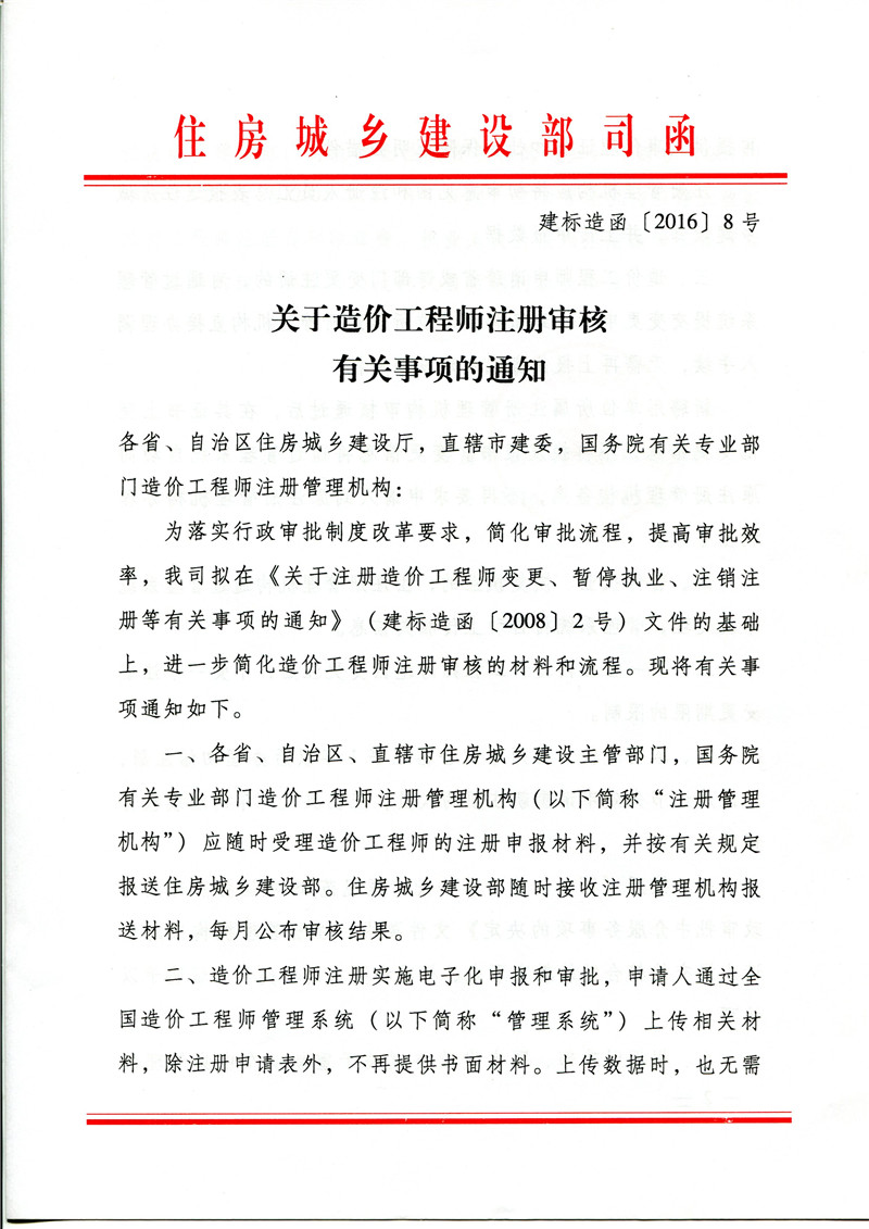 冠亚(中国)造价工程师注册审核有关事项的通知