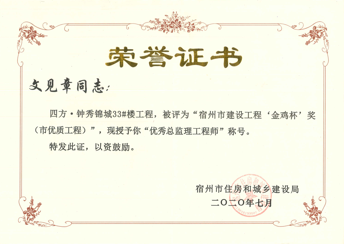 四方.钟秀锦城33#楼工程 -金鸡杯(市优质工程)
